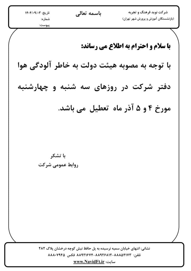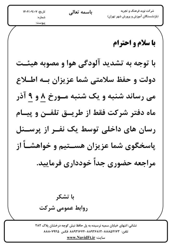 اطلاعیه تعطیلی شرکت در 13 آبان