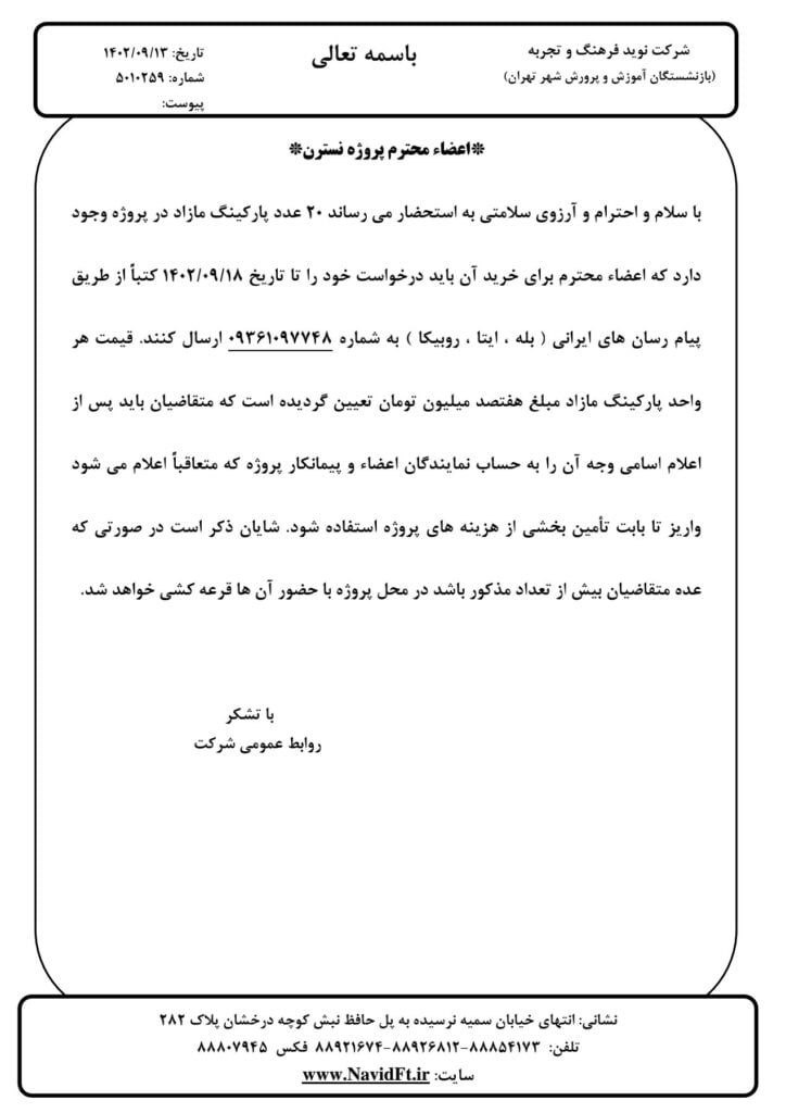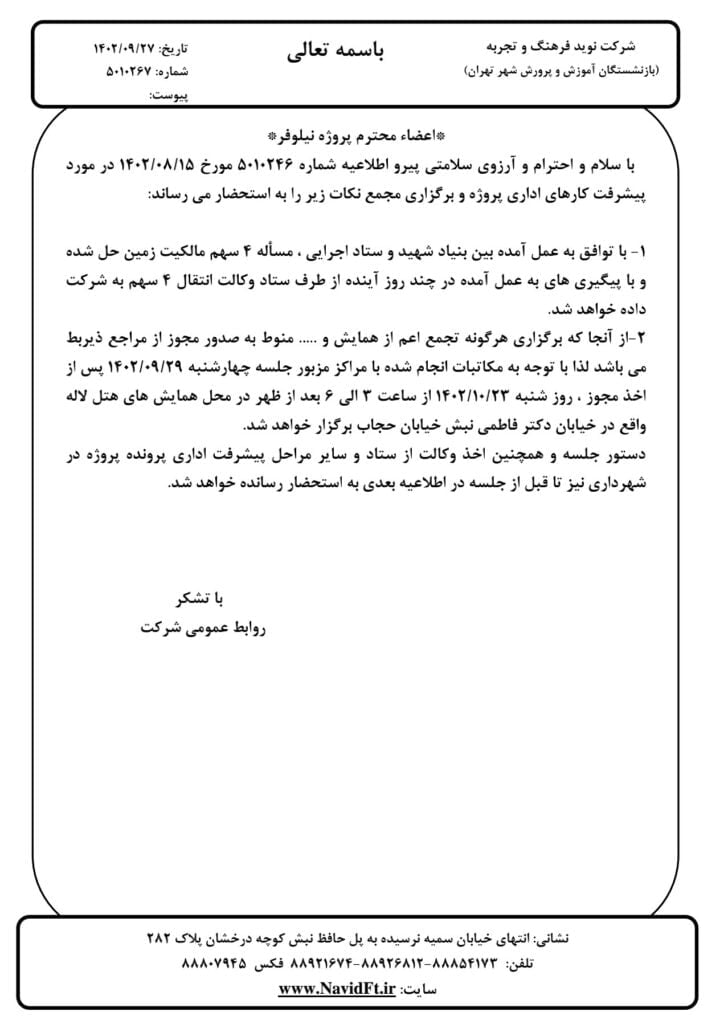 اطلاعیه پروژه نیلوفر (سوهانک)