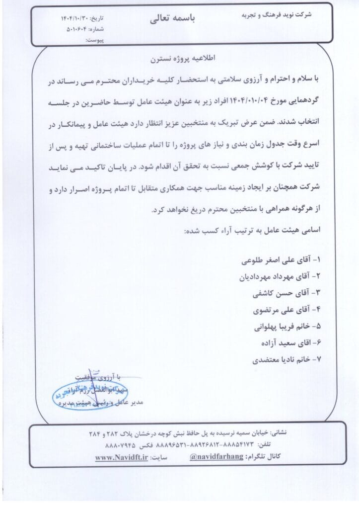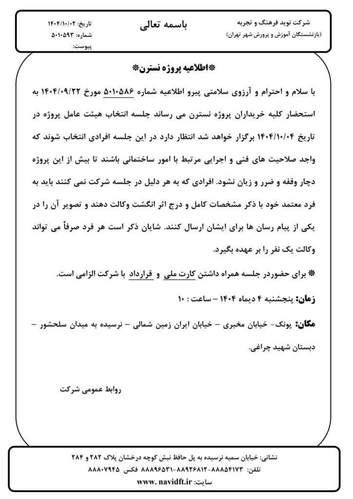 با توجه به افزایش برودت و مصوبه هیات دولت فردا چهارشنبه 1404/11/01 دفتر شرکت تعطیل می باشد